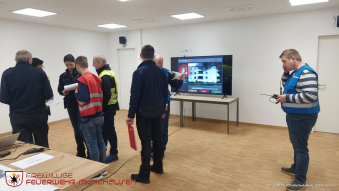 Sehr interaktiv wurde in verschiedenen Räumen mittels mehrerer Laptops und Beamer eine sich weiterentwickelnde Einsatzlage dargestellt. Eine Besonderheit dabei war, dass es in jedem Raum verschiedene Ansichten der Einsatzstelle gab. So war es notwendig, dass sich die entsprechenden Kräfte auch immer wieder von Raum zu Raum bewegen mussten.