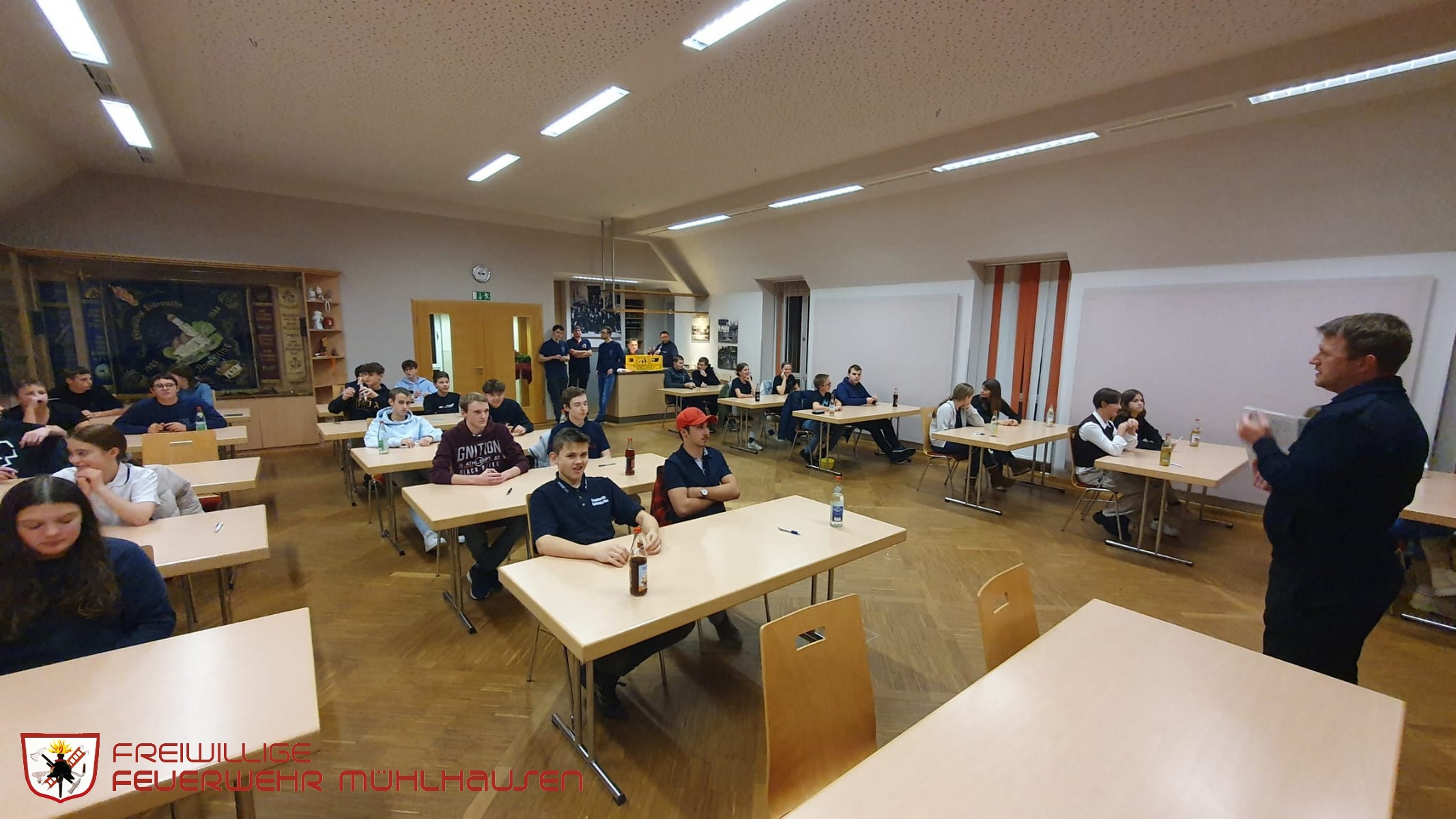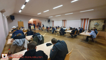 So kamen die Jugendlichen erstmals am 14. November in Anwalting zusammen, um die Theoriethemen zu besprechen. Da der Schwerpunkt des diesjährigen Wissenstests auf dem Thema Unfallverhütungsvorschriften lag, wurden Themen aus dem Bereich Einsatzkleidung (Was gehört zu einer Uniform? Was bedeuten verschiedene Kennzeichnungen auf einer Weste und Helm?), Unfallverhütung und -prävention (z. B. korrektes Auf- und Absitzen, korrektes Anschnallen, etc.) und der Umgang mit Einsatzmaterial (korrektes Tragen, etc.) besprochen. Abgerundet wurde der Übungsabend dann mit einem Westenmemory und verschiedenen Quizfragen.