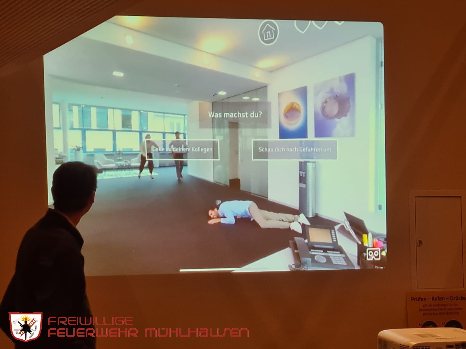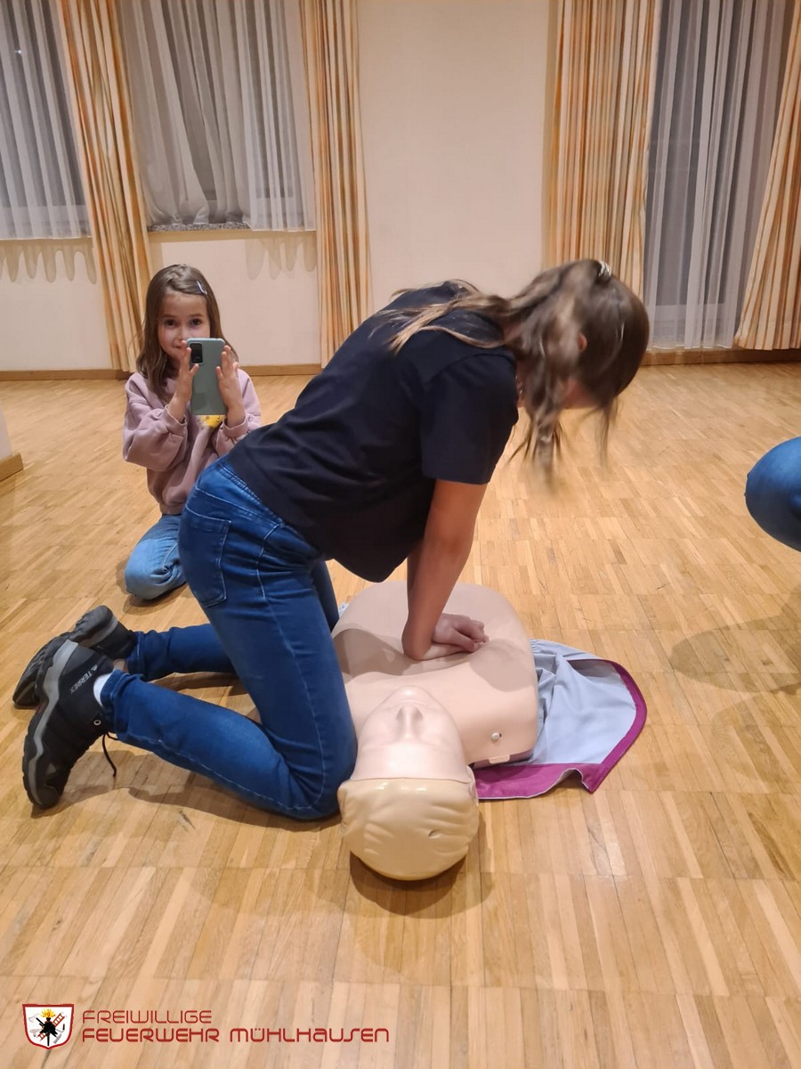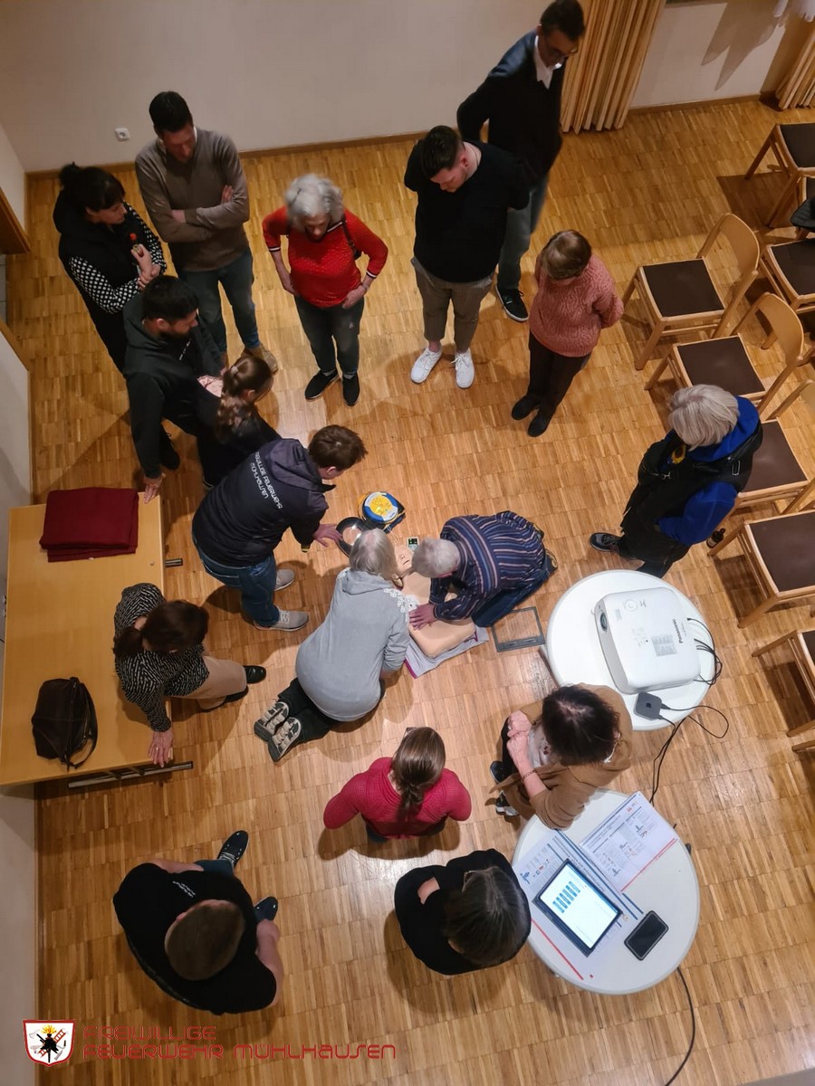 Am 26. März fanden sich rund 40 interessierte Teilnehmer im Pfarrheim Mühlhausen zu einer von der Feuerwehr Mühlhausen angebotenen Schulung im Bereich Erste Hilfe ein. Schwerpunkt dieses Abends war die korrekte Durchführung der Herz-Lungen-Wiederbelebung sowie die Anwendung eines Laiendefibrillators. Die Feuerwehr Mühlhausen verzeichnete einen sehr guten Zulauf zur angebotenen Erste-Hilfe-Schulung im Bereich der Herz-Lungen-Wiederbelebung und der Anwendung eines Laiendefibrillators.