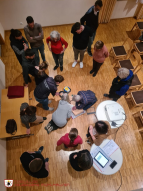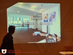 Simon Forster, Medizinpädagoge und Notfallsanitäter bei der Bäuerle & Co Ambulanz oHG, führte durch den Abend und leitete zu Beginn einen interaktiven Theorieteil an. Mittels ihrer eigenen Handys konnten die Teilnehmer an einem Quiz teilnehmen, das ihre Einschätzung zu diversen Fragen wie beispielsweise der ermittelten Ersthelferquote in Deutschland abfragte. Über dieses Tool konnten sie auch ihre Erwartungen an den Abend formulieren, bevor der Dozent mittels Virtual Reality eine dargestellte Reanimation durchführte. Nach der Diskussion gestellter Fragen hatten die Teilnehmer die Möglichkeit, praktisch zu üben.