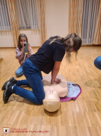An drei Stationen, betreut von erfahrenen Mitgliedern der Feuerwehr, durfte die Bevölkerung an den bereitgestellten Übungspuppen üben. Es war besonders erfreulich zu sehen, dass sich auch die jüngsten Besucher mutig an den praktischen Übungen versuchten. Im praktischen Teil wurde insbesondere auf die Unterschiede eingegangen, die bei einer allein oder im Team durchgeführten Reanimation gelten. Auch wurde Wert auf eine optimale Haltung, Drucktiefe und den klaren Appell "Notruf absetzen!" gelegt. Selbstverständlich konnte auch mit einem Übungsgerät die korrekte Anwendung des Defibrillators geübt werden; eine weitere Besonderheit war auch die Station zur Reanimation an einem Kind. Auch die hier geltenden Besonderheiten wurden ausführlich besprochen.