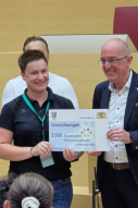 An einem ganz besonderen Ort erhielt Verena Baumgartl aus Mühlhausen am 23. Juli 2024 von Landrat Dr. Klaus Metzger die 3500. Ehrenamtskarte. Die 38-jährige Mutter einer Tochter, die seit vielen Jahren bei der Freiwilligen Feuerwehr Mühlhausen aktiv ist – aktuell als 2. Kommandantin -, nahm die Ehrenamtskarte als Anerkennung für ihr herausragendes Engagement und ihren Einsatz im Plenarsaal des Bayerischen Landtags entgegen.