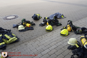 Zum Abschluss wurde den Feuerwehrleuten noch erklärt, wie man sich nach einem Brandeinsatz korrekt entkleidet um möglichst keine Gefahrstoffe einzuatmen, welche sich nach einem solchen Einsatz typischerweise an der Kleidung anhaften.