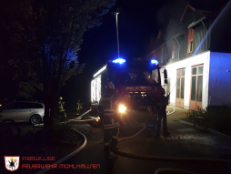 Außerdem hatte die Jugendfeuerwehr die Aufgabe, das angrenzende Gebäude bzw. den angrenzenden Dachstuhl zu schützen und baute daher einen Löschangriff mit drei Rohren auf. Außerdem wurde von der Jugendfeuerwehr die Wasserversorgung für das Löschfahrzeug hergestellt, gemeinsam mit Mitgliedern der aktiven Mannschaft die Beleuchtung aufgebaut und die Verkehrsabsicherung sichergestellt.