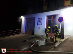 „Alarmiert“ wurden die Feuerwehrleute zu einer unklaren Rauchentwicklung im Feuerwehrhaus Mühlhausen. Dort angekommen wurde dem Gruppenführer der aktiven Mannschaft mitgeteilt, dass eine Werkstatt brenne und auch eine Person vermisst wurde. Realitätsnah wurde die Fahrzeughalle mit Disconebel verraucht und auch Brandgeräusche eingespielt. Die Person wurde schnell gerettet und durch die Jugendfeuerwehr mit Erste-Hilfe-Maßnahmen betreut.