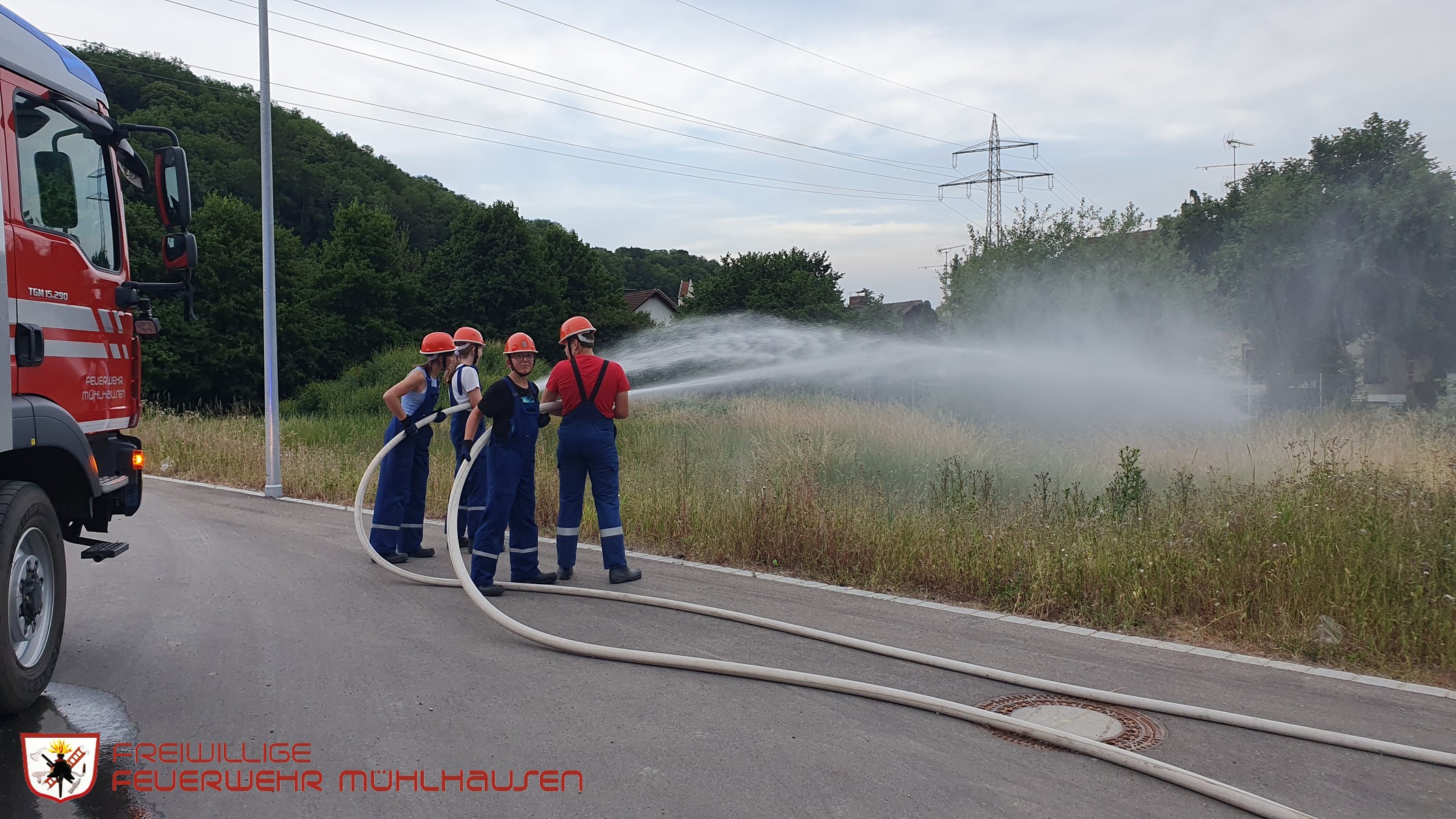 Die Jugendfeuerwehr Mühlhausen führte am 20.06.2023 eine wichtige Übung durch. Dabei wurde erstmals die Feuerwehrdienstvorschrift 3 eingeübt, was für alle anwesenden Jugendlichen eine Premiere darstellte. Die Übung vermittelte ihnen die Sitz- und Antreteordnung sowie die grundlegenden Aufgaben der verschiedenen Trupps. Die Jugendlichen setzten das Gelernte schnell um, was die Jugendwarte mit Stolz erfüllte. Basierend auf diesem Basiswissen wird der Löschangriff schrittweise in seiner Schwierigkeit ausgebaut. Eine erfreuliche Nachricht ist zudem ein weierer Interessent, der voraussichtlich der Jugendfeuerwehr beitreten wird. Wir bedanken uns bei der Jugendfeuerwehr für eine tolle Übung!