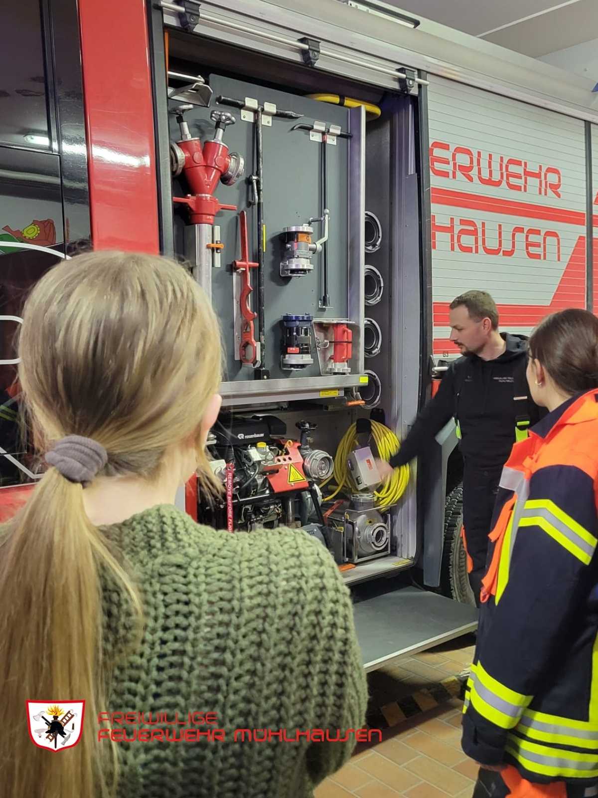 Bei der letzten Jugendübung drehte sich alles um die Fahrzeug- und Gerätekunde. Unsere Betreuer Jessica und Michael erklärten zunächst die Beladung der einzelnen Geräteräume sowie die Fahrer- und Mannschaftskabine des Löschfahrzeugs.